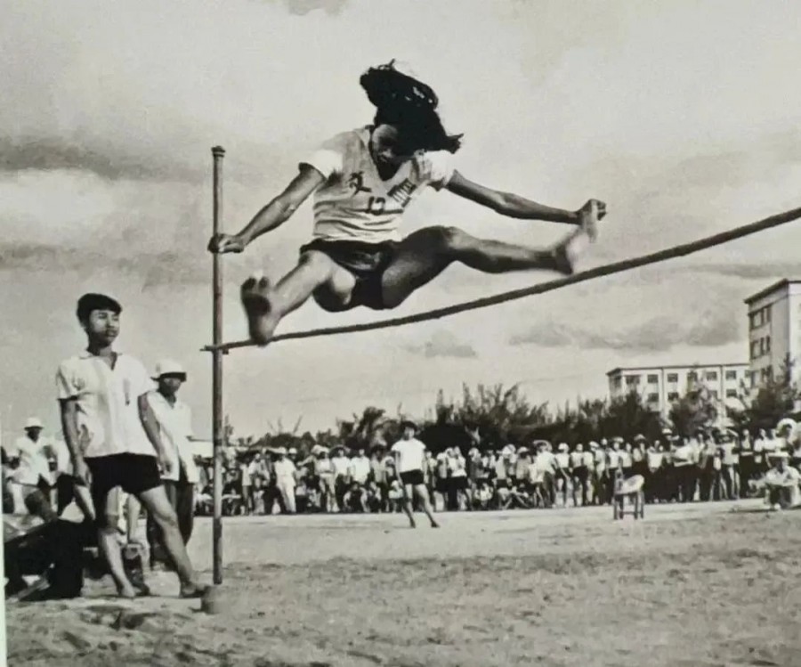 欢腾的浪花,总在下午自由活动和晚自习前那一段时光扬起。 操场北端的4个篮球场,几乎天天有比赛。经常邀请兄弟学校教工与学生前来参加友谊赛。高中部那几位后来考入体育学院深造的骁勇健儿,在篮球场上飞身投篮,拼抢盖帽,奔腾跳跃的矫健身影,常使围观喝彩的学弟学妹们倾倒。 林荫道旁,整齐排列一排乒乓球案。虽然水泥台案粗糙简陋,禁不住男女同学,热情似火,挥拍激战,你推我挡,大力扣杀。 此时的足球场上,剽悍男生足下生风,全场奔跑角逐,将那一粒皮球踢得满场飞舞弹跳,在守门员拼命守卫下,攻守双方一时难以破门,难分胜负。 难忘怀,1964年春季的全校田径运动会。 仿佛迎接盛大节日,全校师生倾巢出动,停课三天。每个班级都有代表队出场,所有师生都搬来长凳,围坐操场四周,既做热心观众,又做迷粉拉拉队员。 庄严而又简朴的运动会开幕式,激扬起一片欢乐的海洋。 没有铜管乐队,只有少先队队鼓声“咚咚”引导,60位同学列队齐整,吹响竹笛,奏出了“日落西山红霞飞……”的队列进行曲,自豪地迈步通过彩旗飘扬的简易主席台。学校领导开心地鼓掌致意,全体师生欢呼雀跃,惊起了校园山坡上鹊鸟齐飞,恍惚间似闻鸽群起舞,带着悦耳哨音,飘向深邃的蓝天白云…… 各项比赛开始了。 沙坑前的踏板,跳高横杆的抬升,吸引了无数热切目光,紧张注视着那动人心魄的奋力一跃……铁饼和标枪,在蔚蓝天空下,画出了一道道优美的抛物线……