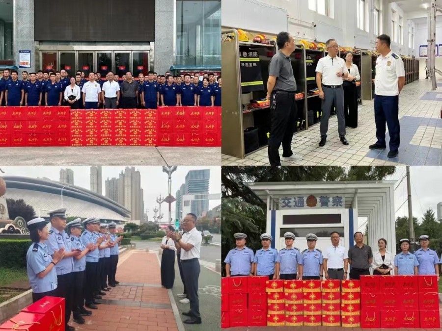 在金台大道隧道口交通岗、金台消防大队,王启、王博向辛勤坚守在岗位上的交通工作者及消防员们送上慰问品致以崇高的敬意和节日的祝福,并详细了解节日期间值班值守、后勤服务保障、干部职工生活等情况,希望他们继续发扬优良作风、站好岗、履好职、尽好责,扎扎实实做好各项工作,为保障人民群众生命财产安全做出更大的贡献。