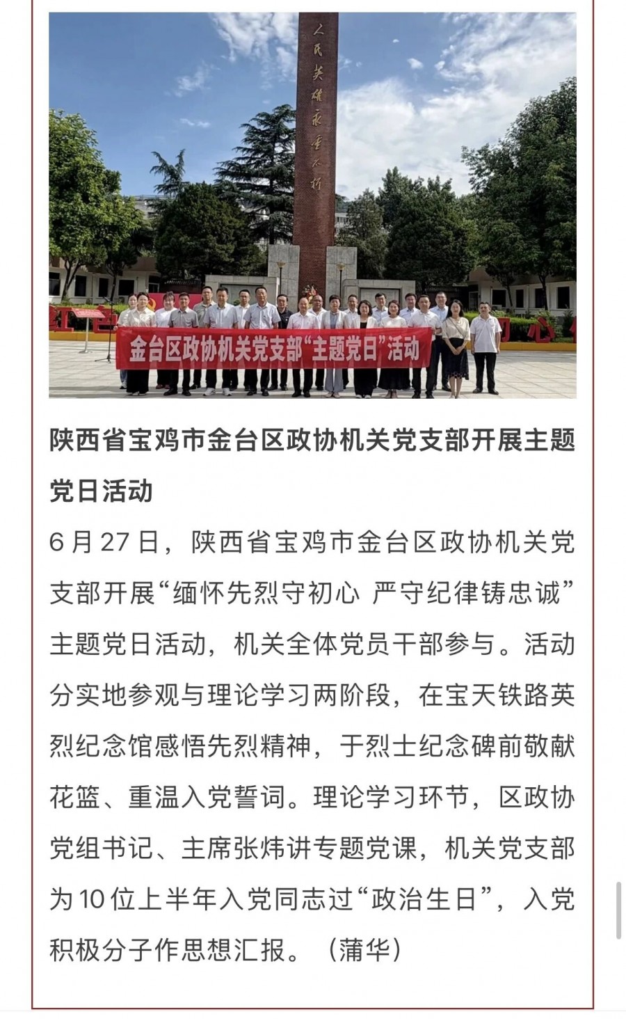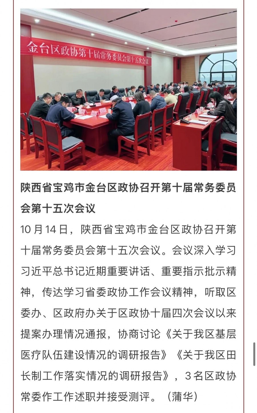 点滴记录,见证担当。2025年,金台区政协在《人民政协报》“早闻政协”平台累计刊发16篇简讯,从提案办理的实效进展到协商议事的鲜活场景,从民生实事的推进落地到委员履职的生动瞬间,以高频次、接地气的报道,定格日常履职的坚实足迹。
